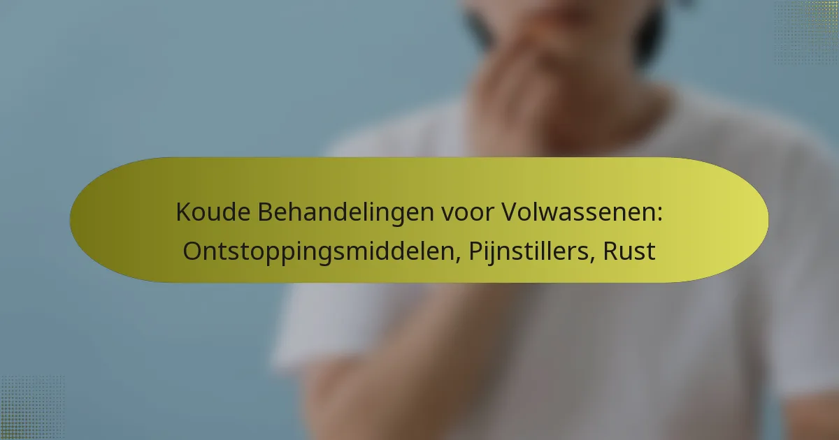 De belangrijkste behandelingsopties voor verkoudheidsklachten bij volwassenen omvatten decongestiva, pijnstillers, rust en hydratatie. Deze methoden zijn gericht op het verlichten van ongemak en het bevorderen van herstel van verkoudheidsklachten.